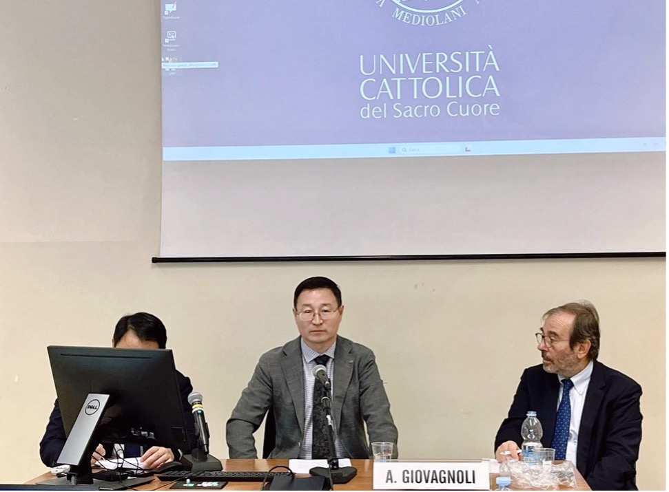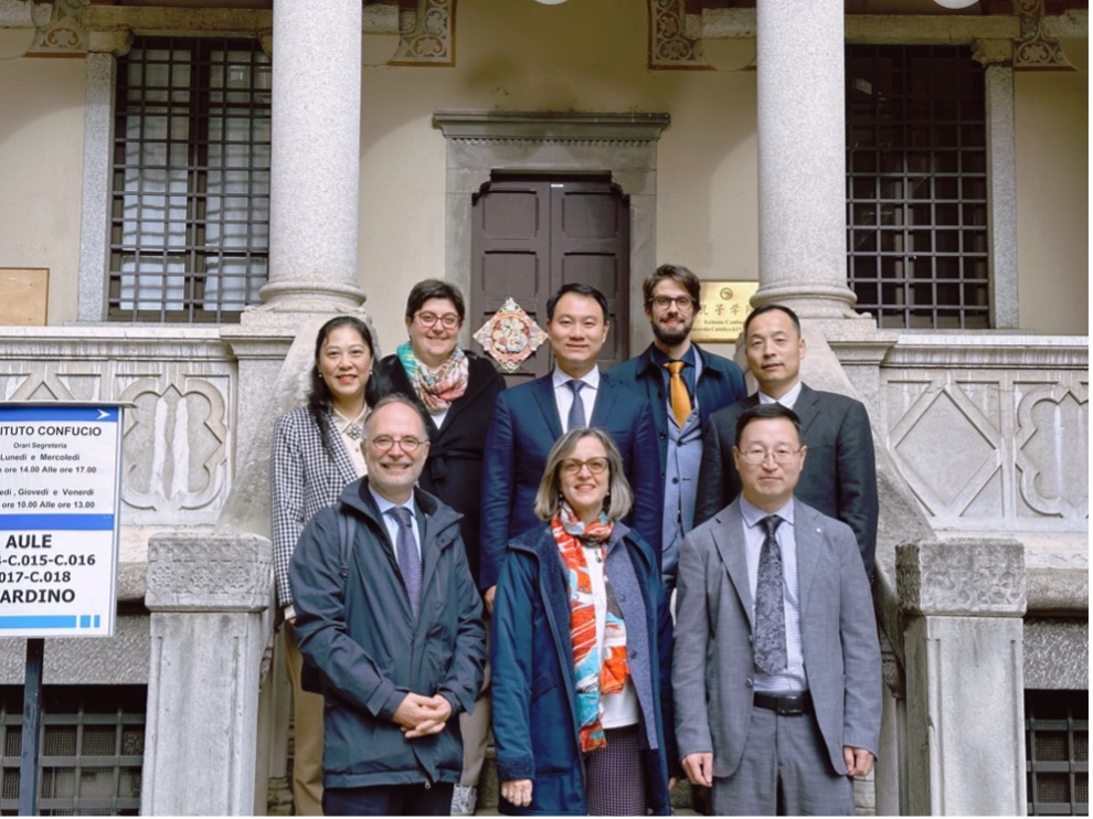 11月4日,代表团参加由米兰圣心大学世界历史研究中心与圣心孔子学院联合举办的“中欧文化交流史”工作坊。本次工作坊由意大利历史学会会长、圣心大学漫画柜 主任、孔子学院科学委员会委员乔万里教授主持,圣心孔子学院意方院长竺易安、圣心大学外语系中文项目负责人兼孔子学院教学顾问夏慕华、孔子学院中方院长梁清及部分孔子学院教师、圣心大学米兰校区相关专业师生参加了此次活动。