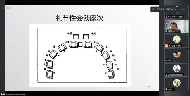 主持人游览老师在总结中表示,樊超老师深入浅出的课程以及细致的案例解读,帮助同学们了解到外交领域的相关知识,从跨学科视角为外交史的研究提供新思路;他同时指出,“史海新舟”系列课程秉持“历史+”跨学科交流精神,可以帮助同学们开拓学术视野,对于拔尖人才的培养大有裨益。与会的同学们也纷纷提出各自在外交技术与外交史方面的问题,同樊超老师进行深入交流。为期两日的活动圆满结束!