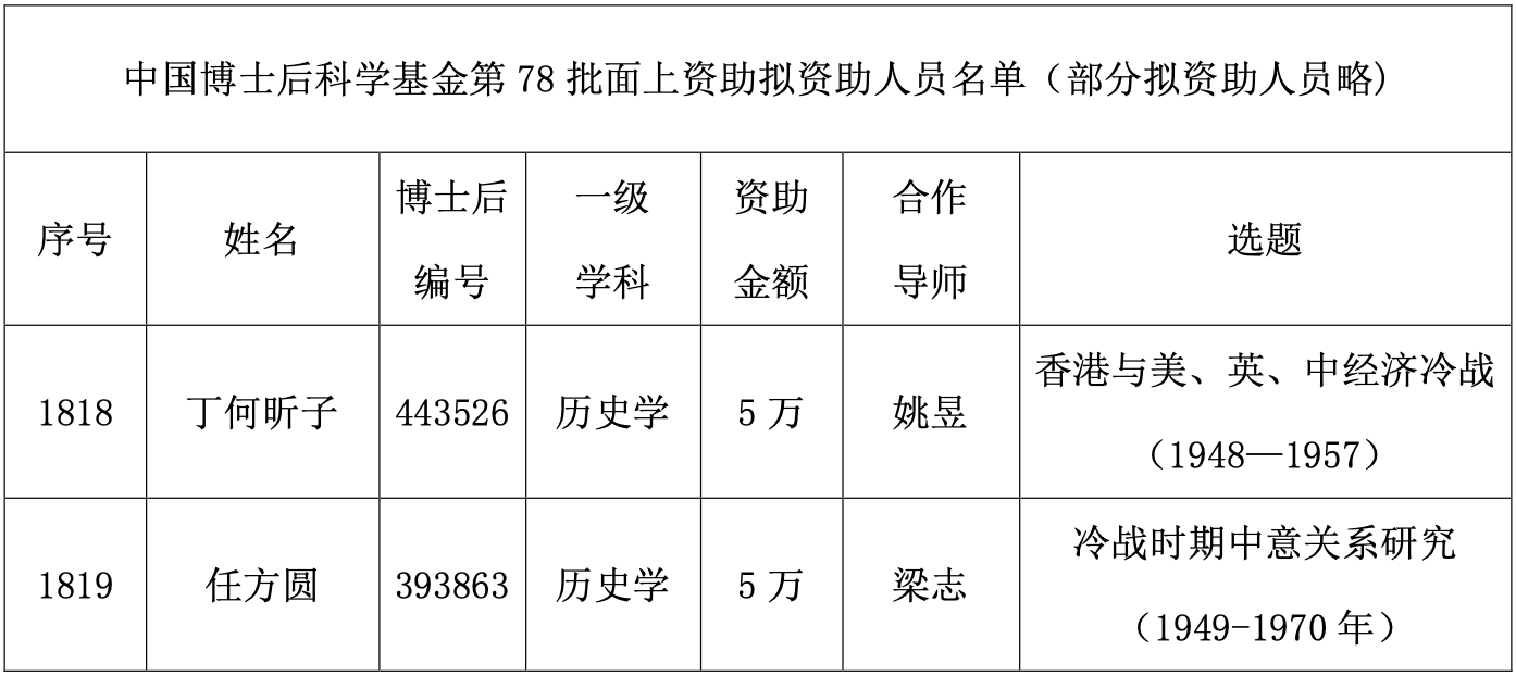 近日,中国博士后科学基金会发布了第78批面上资助拟资助名单,我系两位博士后获得资助。