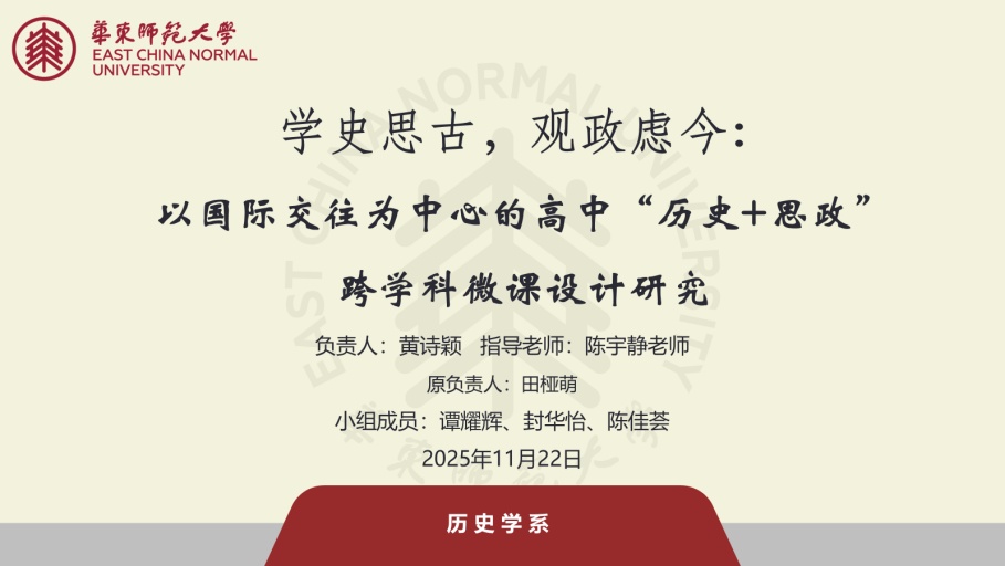 “创课实验室”是我系卓越师范生培养计划的重要环节,以“学生中心”和“实践导向”为核心理念,面向中学征求拓展课程和教研课题合作意向,搭建基础教育学校和师范生培养之间的桥梁,整合高校专业资源与中学教学需求,形成“专业院系与中学联动”的成长闭环,打造多层次、立体化的教师培养体系。从2022年至今已完成30个课题,吸引来自各专业学生数百人和50余位大、中学教师参与,连续2年有项目在全国跨学科教学设计中获奖。未来,创课实验室将持续推动各项目迭代优化,深化跨学科融合与教学实践创新,为中学历史教学改革注入新的活力,更为师范类人才科研意识、协作能力与创新精神的培育提供坚实支撑。