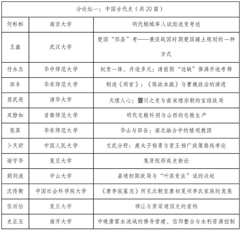 华东师范大学第一届吕思勉中国史博士生高端论坛自2022年7月征稿以来,得到全国各高校相关院系的大力支持。经本系邀请专家评审后,确定48篇论文入选本次论坛,以下为入选名单: