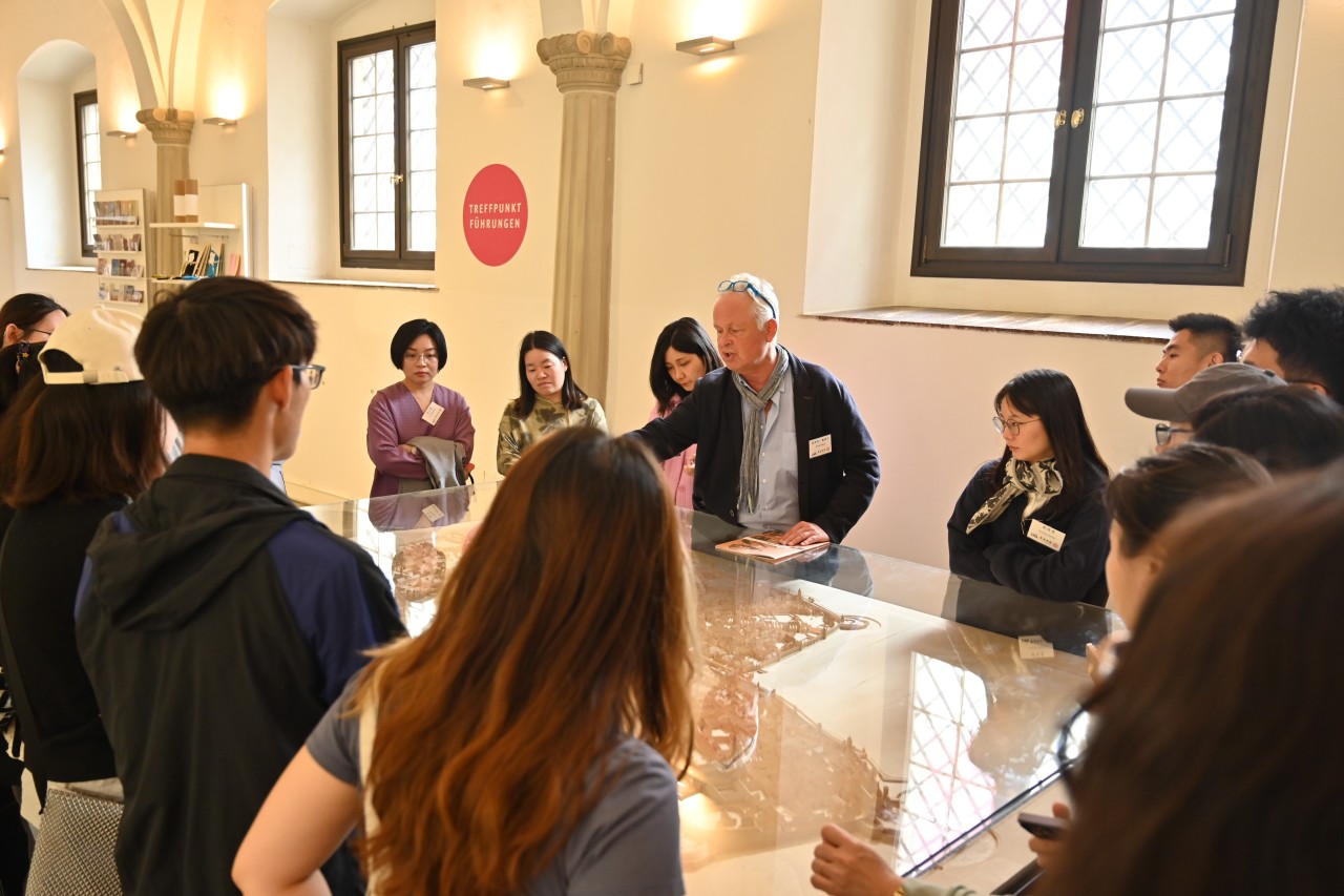 下午,学员们参观了奥格斯堡市中心的马克西米利安博物馆。文艺复兴时代的雕像、展现城市景象的16世纪绘画、基督教主题的雕塑展览、17至19世纪的航海设备、水利设施模型、琳琅满目的金银器和家具等藏品,使学员们对于奥格斯堡这座城市的历史文化有了更多了解。