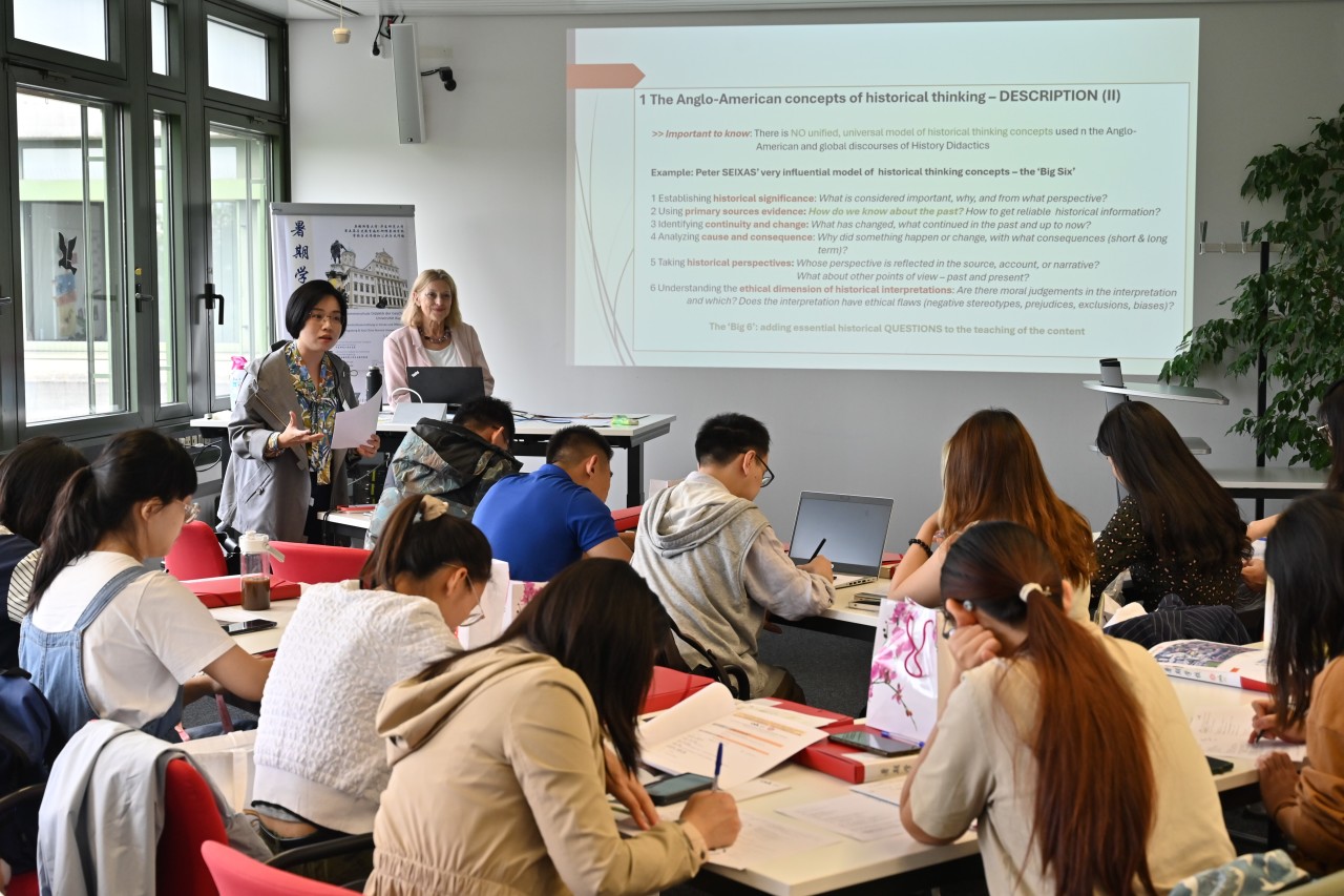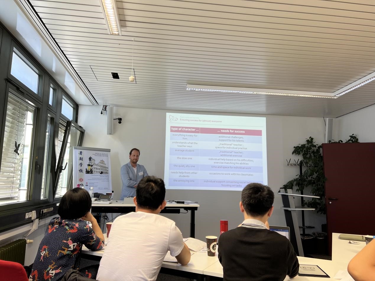 下午,米夏埃尔·沃布林博士带来讲座“德国的学校体系和历史学科教育的地位”。他为大家详细介绍了德国的教育体制、历史教师培养目标和历史教育现状。在讨论环节,学员们就“德国对于近代史的批判反思”“公众史学与中学教育的结合”“学校历史教育对于两次世界大战的表述”以及“历史教材对于社会现象的即时更新”等问题展开交流。讲座后举行了“中国与德国的历史教师教育”工作坊,中方学员与奥格斯堡大学学生在丰富的互动活动中增进了解。