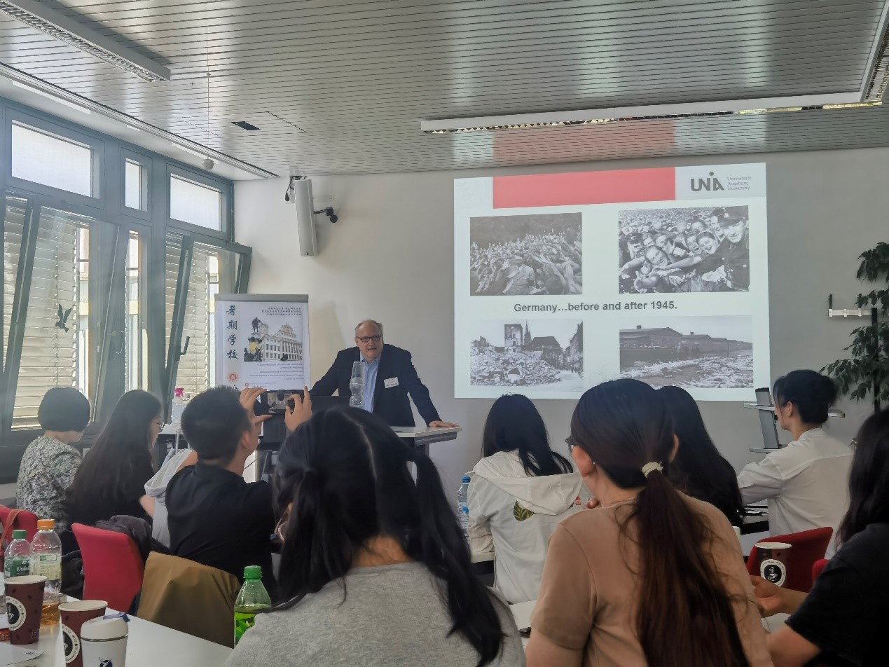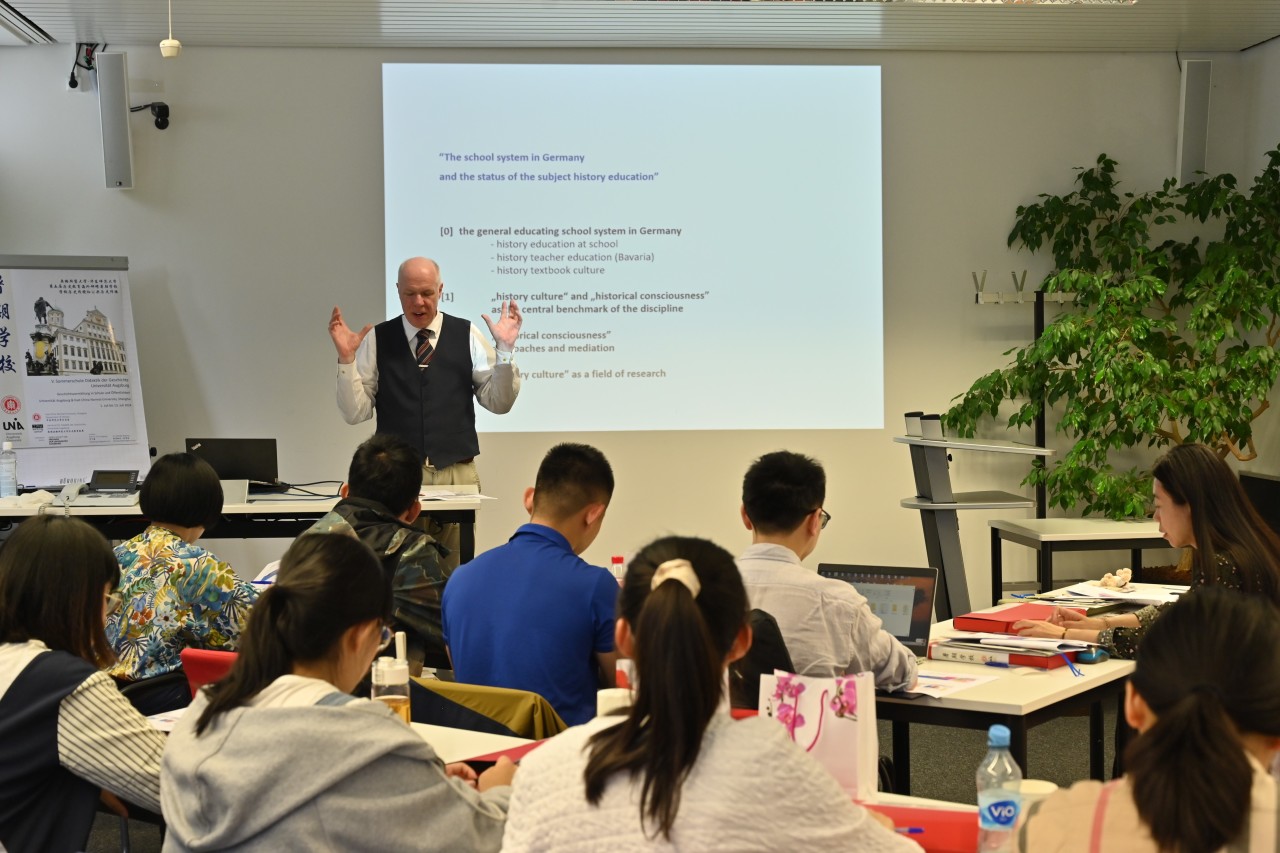 7月1日至7月13日,由我系和德国奥格斯堡大学人文历史学院联合主办的第五届历史教育海外研修暑期学校在德国举行,来自全国各地的高校教师、中学教师,以及我系学生20余人参加。本次活动由漫画柜 特聘教授、中国德国史研究会会长景德祥和副教授范丁梁担任中方领队,漫画柜 荣誉教授、奥格斯堡大学历史教育学荣休教授苏珊·波普(Susanne Popp)和奥格斯堡大学历史教育学教席学术顾问米夏埃尔·沃布林(Michael Wobring)担任德方领队,我系驻奥格斯堡大学海外工作站访问博士生杨琪担任助教。