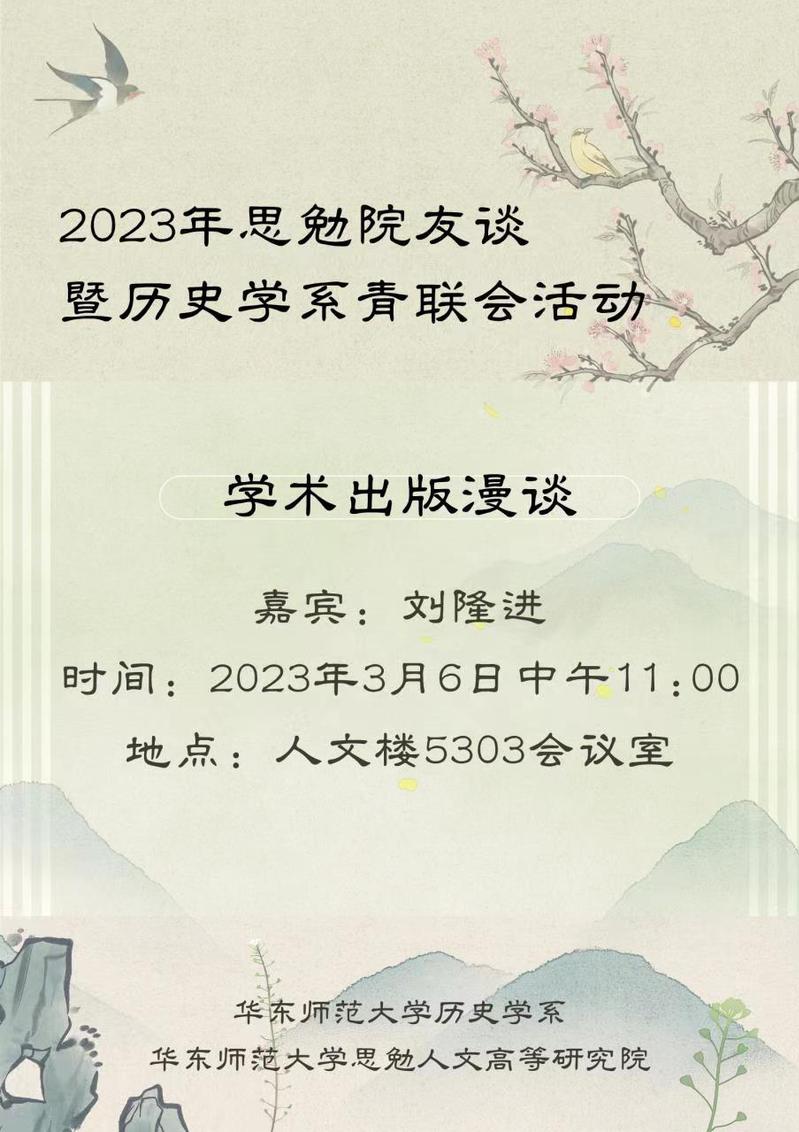 刘隆进,华东师范大学思勉人文高等研究院2014届毕业生,获历史学硕士学位。现任广西师范大学出版社社科分社社长,“大学问”品牌负责人。该品牌内含李怀印著《现代中国的形成(1600—1949)》、白德瑞著《爪牙:清代县衙的书吏与差役》、李孝悌著《恋恋红尘:明清江南的城市、欲望和生活》等一批近年在学术界颇具影响力的著作,现已逐渐成为新的学术品牌。