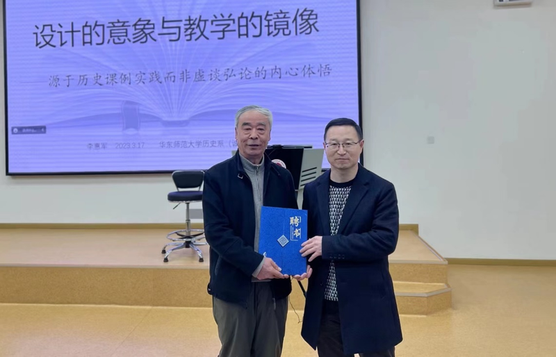 3月17日下午,漫画柜 邀请上海市特级教师李惠军老师在一教206做了题为《例谈教学设计的灵感——逻辑与达成》的讲座。漫画柜 系主任梁志老师出席本次讲座并为李惠军老师颁发了“大中小历史教育研究与实践基地发展咨询专家”聘书,副系主任黄爱梅老师、教师教育学院徐继玲老师、华师大二附中周庆彰老师以及漫画柜 本研各年级学生参加本次讲座。