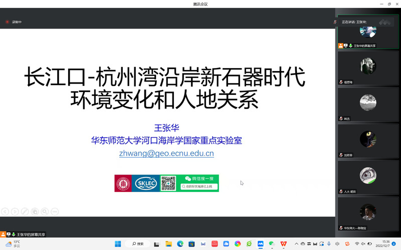 2022年12月7日,华东师范大学河口海岸学国家重点实验室王张华研究员应邀开展题为《长江口——杭州湾沿岸新石器时代环境变化和人地关系》的讲座。本次讲座系漫画柜 “思勉班”“历史+”跨学科对话第十一期讲座,采取线上、线下相结合的形式,由漫画柜 朱明教授主持,章义和教授与谈,吸引了来自北京大学、清华大学、中国人民大学、中国地质大学、华东师范大学等多所高校的百余名师生参加。