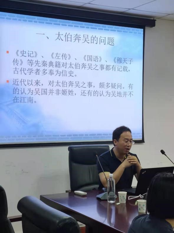 胡嘉麟老师首先论述了在古史研究中考古学与文献学结合的重要意义,之后,他以近些年发现新的有关吴越考古材料为基础,对“太伯奔吴”、宜侯夨簋等史学界聚讼不已的问题提出了新的看法。胡嘉麟老师从太伯奔吴是否存在、太伯奔吴的地点在哪里、吴国何时迁到江南三个方面展开对太伯奔吴的问题探讨,推测太伯奔吴实际上是通过褒斜道翻过秦岭,沿汉水顺流而下达到丹阳的荆山地区,以及西周中期的吴国在毗邻南阳盆地的淮水流域,春秋早期尚在苏北地区,春秋早期以后迁到苏南。之后,胡嘉麟老师从吴国迁徙的问题引申出对宜侯夨簋性质的研究,认为:夨、吴、虞三字在金文中作为国族名互不通用;宜侯夨簋不属于吴国青铜器,而是虞国青铜器;烟墩山墓葬出土的青铜器时代和风格都不统一,不是西周时期的吴国墓葬;吴叔器、吴季器的风格统一,为中原样式,尚未受到徐舒、越文化的影响。同时,胡嘉麟老师还讨论了吴国称王的时间与史书记载不符,以及西周时期吴国与周王室和其他诸侯国的关系,以此勾勒出吴国历史发展的轨迹,认为:吴国与中原诸国一直保持密切的联系;西周晚期以后,周王室无力控制南淮夷,吴国开始有蛮夷化的倾向,在两周之际开始称王;吴国的同姓婚也是蛮夷化的重要标志。之后,胡嘉麟老师鼓励与会同学重视方法论的学习。
