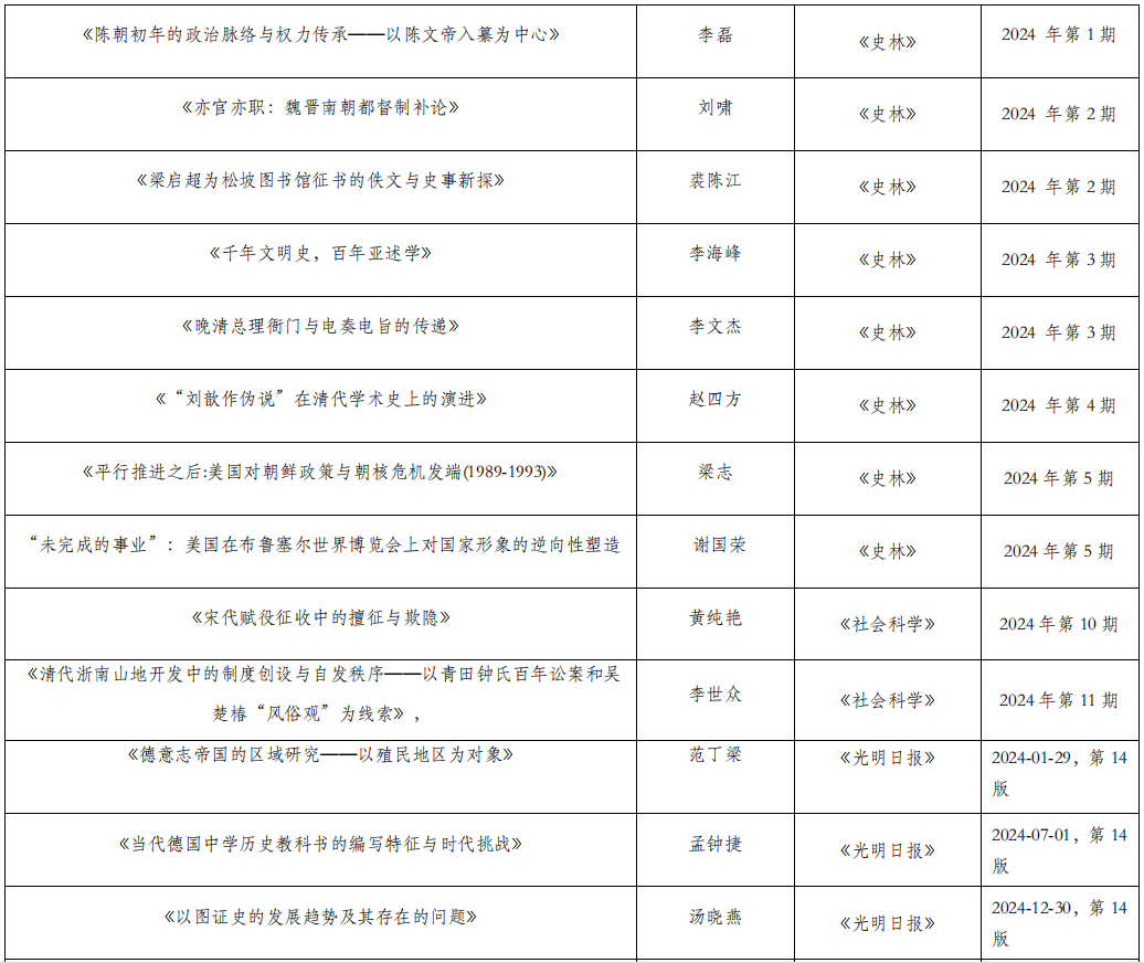 中文高水平期刊论文28篇,其中,《历史研究》发文2篇,《世界历史》发文6篇,《中共党史研究》发文6篇。
