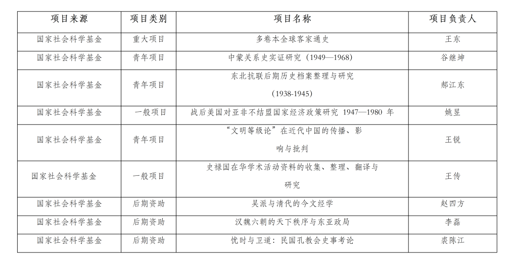2017年 | 国家级项目 5项 | 国家社科6项 | 特别委托项目 | 沈志华:中国周边国家对华关系档案收集及历史研究 | |