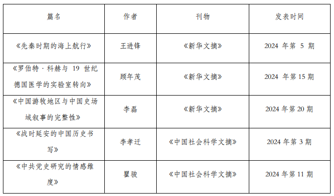 本年度所发表的论文中,被《新华文摘》全文转载3篇,《中国社会科学文摘》全文转载2篇,人大复印报刊资料全文转载25篇。